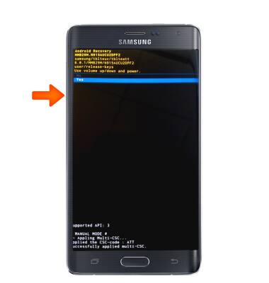 - Press the Volume-down key to scroll down until 'Yes -- delete all user data' is highlighted.
