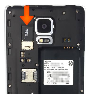 - Insert the Micro SIM card with the gold contacts facing down and the notched edge going in first.