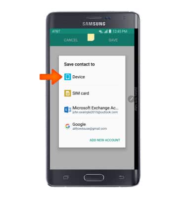 - Choose Desired location to save contact.