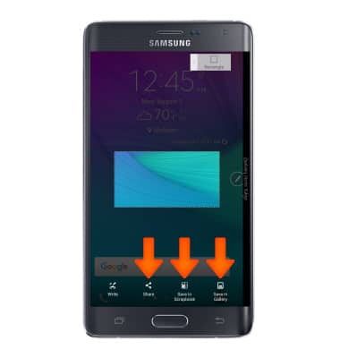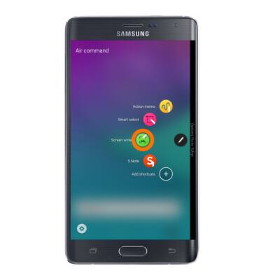 - To capture images, from the Air command screen, tap Screen write with the pen. After the screenshot is captured you can write or draw on it.