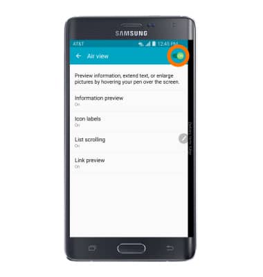 - Air view allows you to preview information, extend text or enlarge pictures by hovering your pen over the screen. Tap the Toggle to turn Air view on or off.