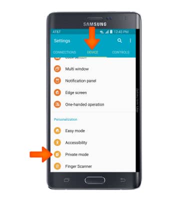 - Scroll to the DEVICE tab, then scroll to and tap Private mode.