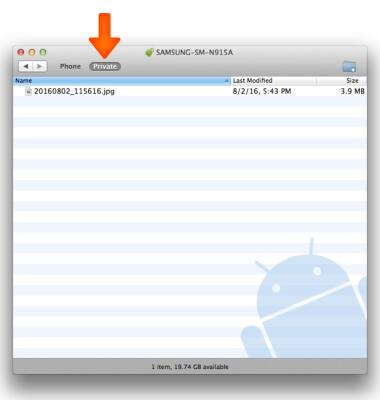 - To view Private mode folder from a computer, connect the device to your computer and launch Android File Transfer.