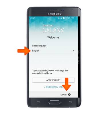 - When turning the device on for the first time, or after a factory reset, you will be walked through a series of prompts to set up your device. To begin, select the Desired language, then tap the START.