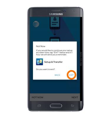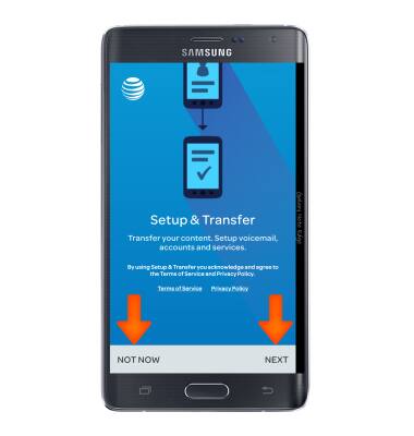 - If you would like to transfer content such as voicemail, accounts, and services from another device using AT&T Setup & Transfer tap NEXT and follow the onscreen prompts. If you would like to proceed without transfering content tap NOT NOW.