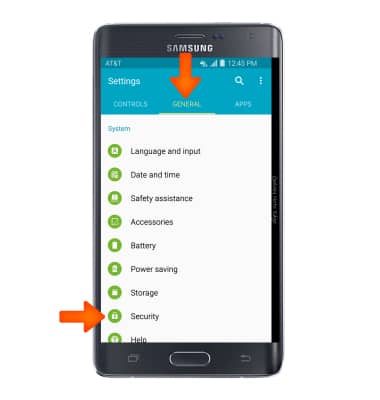 - Swipe to the General tab, then tap Security under the System section.