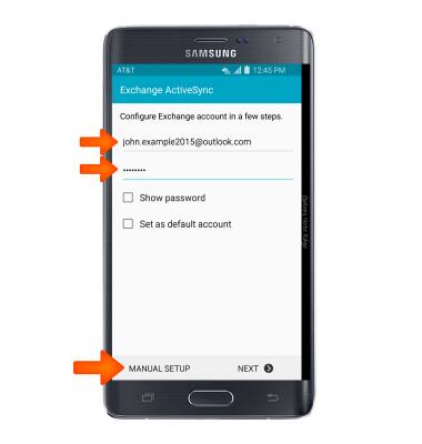 - Enter the desired email address and password, then tap MANUAL SETUP.