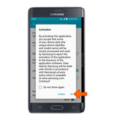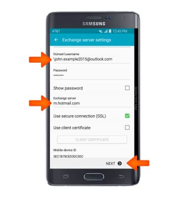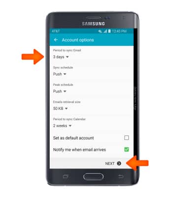 - Adjust Exchange server settings as desired, then tap NEXT.