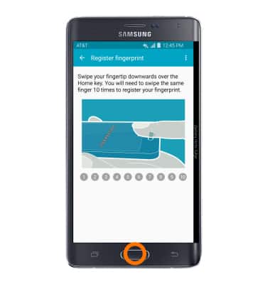 - Swipe your fingertip downwards over the Home button. You will need to swipe the same finger 10 times to register your fingerprint.