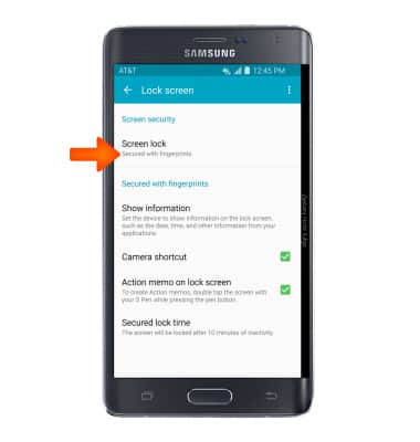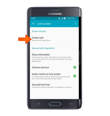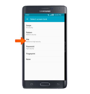 - Tap Desired screen lock type, and follow the onscreen prompts.
