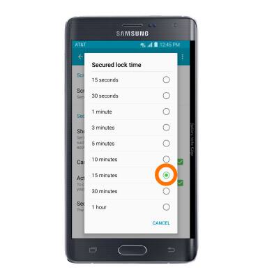 - To adjust the lock screen timeout setting, from the Lock screen screen, tap Secured lock time.