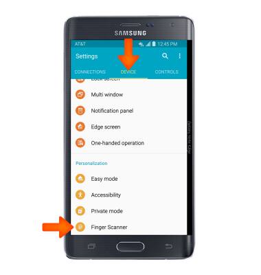 - To register additional fingerprints, from the DEVICE tab in settings, tap Finger Scanner.