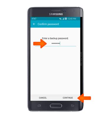 - Enter a backup password of at least 6 characters, including at least 1 letter and 1 number and tap CONTINUE.