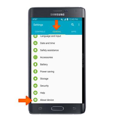 - Swipe to the GENERAL tab, then tap About device.