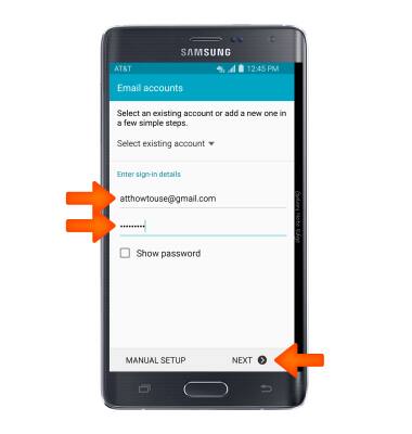 Note: To manually configure email settings (such as server settings and security type), tap Manual settings and enter the required information. You will need your account's server settings. If you don't know this information, please contact your email provider for assistance.
