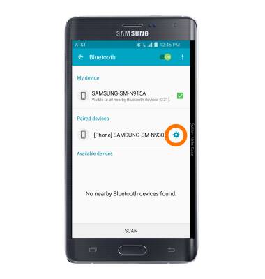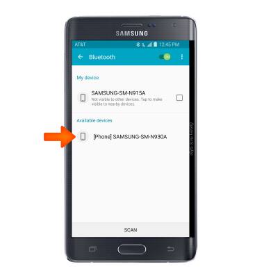 Note: If the desired device is not shown, make sure it is set to discoverable, then tap SCAN. You may be prompted to enter a passcode (common default passcode is 0000).