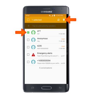 - To delete an entire conversation, from the Messages inbox, touch and hold the Desired message thread.