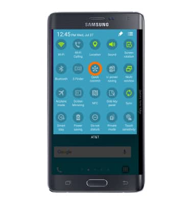 - Wi-Fi connection is required in order to use Quick connect. To turn Wi-Fi on, swipe down from the top of the screen, swipe to and tap Wi-Fi.