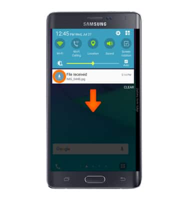 - After the files have been accepted and downloaded, they can be accessed from the application in which they are used (such as the Contacts application). You can also access them from the Notification Panel by swiping down from the top of the screen.