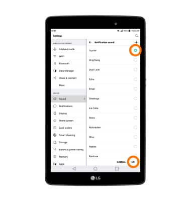 - CHANGE NOTIFICATION SOUND: To change your notification sound, from the home screen, select the Settings icon.