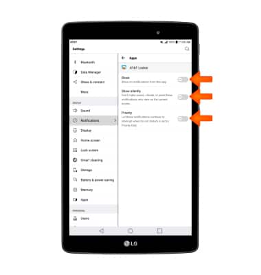 Note: To block or unblock notifications from appearing when the device is locked, go to Settings > Notifications > Lock screen.