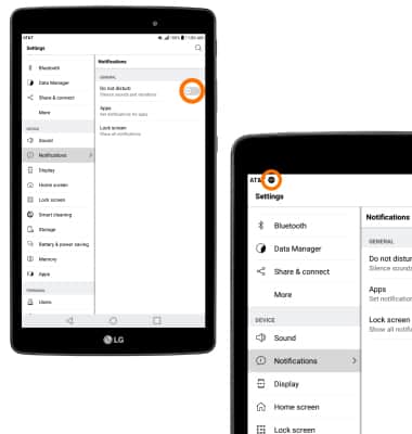 - ACTIVATE DO NOT DISTURB MODE: Do not disturb mode mutes sounds and the screen will remain off for incoming calls and alerts, but not alarms. To turn Do not disturb mode on or off, from the Notifications menu, select the Do not disturb switch. When Do not disturb mode is active, the Do not disturb icon will appear in the Notification bar.