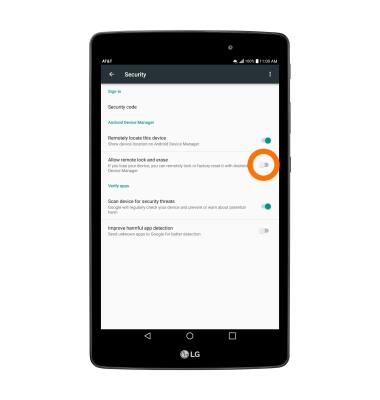 - Android factory reset protection allows you to prevent non authorized users from accessing your device if it's been lost, stolen, or reset to factory settings without your permission. Only someone with the associated Google account or screen lock information can use the device. Ensure that Android Device Manager is enabled. From the home screen select the Settings icon > Google services > Security > Allow remote lock and erase ON switch.