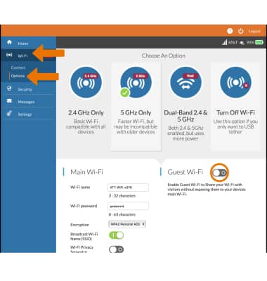 - Click Wi-Fi then click Options. Click the Guest Wi-Fi Switch.