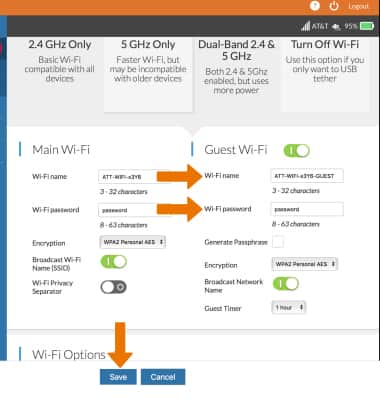 - Set the Guest Wi-Fi settings as desired then click Save.