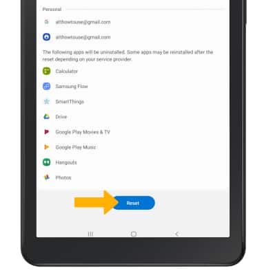 Note: A Factory data reset will revert the device back to factory settings. It will permanently erase all personal data, preferences, settings and content such as pictures, ringtones and apps that are saved to the device. It is recommended that you save (backup) important data before proceeding.