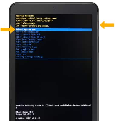 4. When the Android Recovery screen displays again, ensure that Reboot system now is highlighted then press the Power/Lock button.
