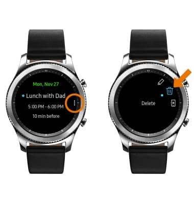 - DELETE AN EVENT: From the desired event, select the Menu icon then select the Delete icon.