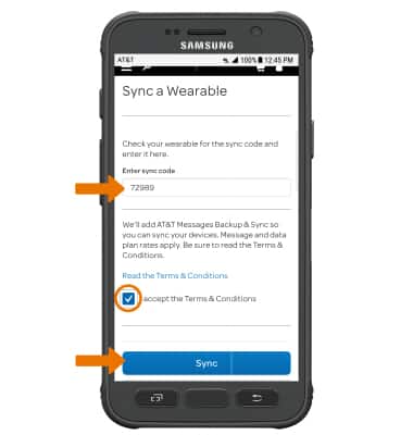- Enter the 5-digit NumberSync sync code from the watch, then select the I accept the Terms & Conditions checkbox. Select Sync.