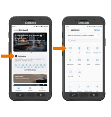 - ADD A DEVICE: From the home screen of the connected device, select the Apps tray. Navigate to and select the Samsung Connect app.