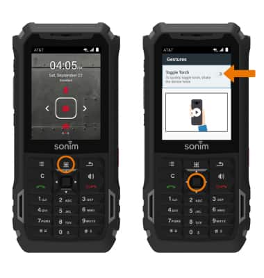 - ENABLE & USE TORCH: From the home screen, press the App tray button > directional buttons to navigate to the Settings app > Select button > directional buttons to navigate to Gestures > Select button > Select button to turn the Toggle Torch switch on. To quickly toggle the torch, shake the device twice.