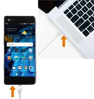 - TRANSFER MEDIA TO/FROM A PC: With the device powered on, insert the USB-C end of the USB-C cable into the port on the bottom of the device. Insert the USB end of the USB-C cable into an open port on the computer.