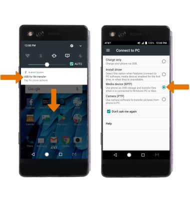 - To place the device into the correct USB mode, swipe down from the Notification bar, then select the Android System notification > Media device (MTP).
