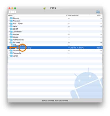 - Once the phone is connected to the computer, the Android File Transfer App will open automatically. Drag and drop the desired files to/from the device to transfer.