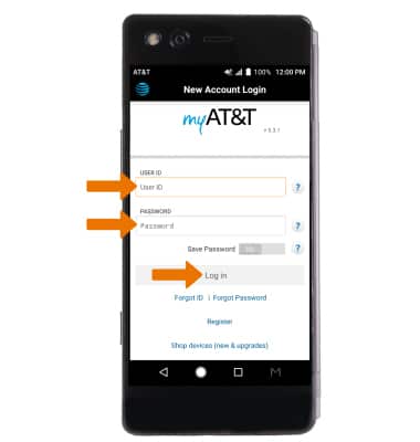 Note: If you have forgotten your AT&T user ID or password, select Forgot ID or Forgot Password. If you do not have an AT&T user ID, select Register and follow the on-screen prompts.
