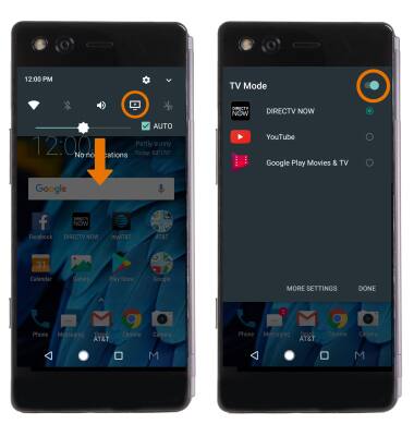 - QUICKLY ENABLE/DISABLE TV MODE: From the home screen, swipe down from the Notification bar then select the TV Mode icon. Select the TV Mode switch.