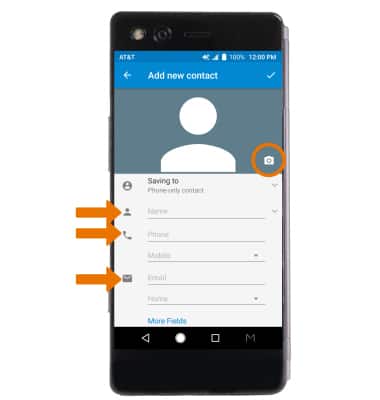 - Enter the desired contact information in the corresponding fields. To add a picture, select the Photo icon then navigate to the desired image.