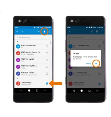 - DELETE ONE OR MORE CONTACTS: Select and hold the desired contact. Select any additional contacts, then select the Delete icon. Select OK to confirm.