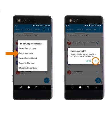 - BACKUP CONTACTS: From the contacts list, select the Menu icon then select Import/Export.