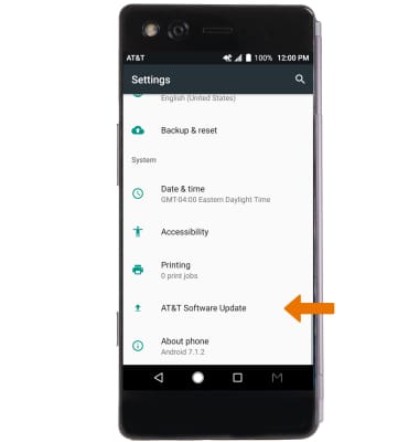 - CHECK FOR SOFTWARE UPDATES: From the Settings screen, select AT&T Software Update.