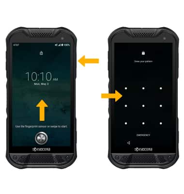 • LOG IN USING THE SECURITY LOCK: From the Lock screen, swipe up from the bottom of the screen then enter your current screen lock. Alternately, to unlock your device using your fingerprint, place and hold your finger on the fingerprint sensor located on the Power/Lock button.