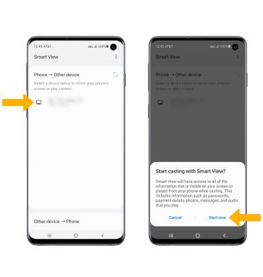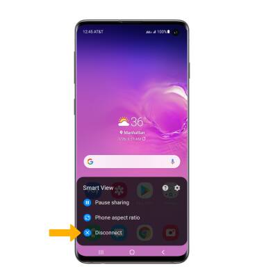 Note: Alternately, you can turn off Screen projecting through Quick Settings. Swipe down from the Notification bar with two fingers > swipe left > select Smart View. The device will disconnect.