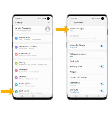 From the Lock screen screen, select Screen lock type > enter your current screen lock > select the new desired screen lock type and follow prompts to complete set up.