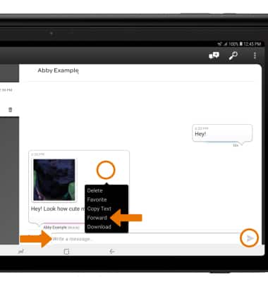 - FORWARD: Select and hold the desired message, then select Forward and follow the prompts to forward a message.