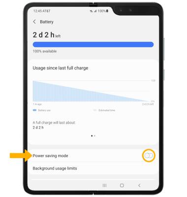 From the Battery screen, select the Power saving mode switch. Select Power saving mode to adjust the device's power saving options.
