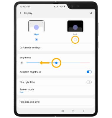 • LOWER SCREEN BRIGHTNESS: Select and drag the Brightness slider left to lower the screen brightness manually.